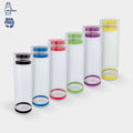 Sistema de rosca twist-off que permite abrir y cerrar la tapa en un giro. Cuenta con dos bandas elasticas de silicon, una en el cuello y otra en la base del cilindro. Mantener el linner en el interior de la tapa en todo momento, se debe retirar hasta su uso final. No exponer el cilindro a temperaturas mayores a 40 °C y revisar que la tapa no este cerrada completamente para su almacenamiento y transportacion. No apto para bebidas calientes. No introducir en microondas ni lavavajillas.