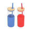 Cilindro de vidrio con manga de silicon removible, tapa de bambu y popote de silicon. Incluye caja individual. El bambu es un producto natural el cual puede presentar variaciones en tonalidades y vetas.
