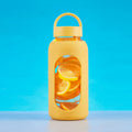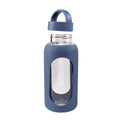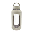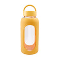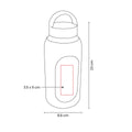 Cilindro de vidrio con manga de silicon graduada en ml. Tapa de plastico con sistema de rosca y asa. Vidrio resistente a bebidas calientes y frias. Incluye caja individual.