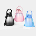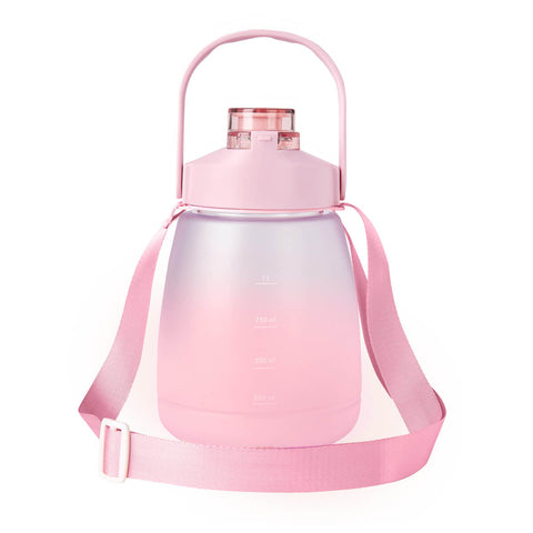 Tapa de plastico con cierre de rosca y boquilla, sobretapa push con boton de seguridad y asa plegable. Incluye asa de poliester para transportarlo facilmente. Cuerpo con terminado rubber que lo hace suave al tacto. Incluye indicador de mililitros para motivar y controlar tus habitos de hidratacion. Incluye popote y caja individual.