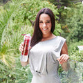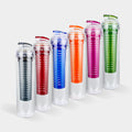Cilindro con infusionador para frutas o bolsas de te. Tapa con sistema de rosca boquilla y sobre tapa que cierra a presion. Incluye caja individual.