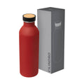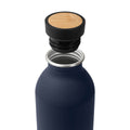 Cilindro metalico de una pared. Tapa de plastico y bambu, su sistema de rosca, permite cerrarlo facilmente y prevenir derrames. Su cuerpo en terminado mate le agrega un toque elegante. El bambu es un producto natural el cual puede presentar variaciones en tonalidades y vetas. Capacidad de 18 Oz. Incluye caja individual.