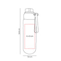 Cilindro de plástico de una pared. Tapa de plástico con sistema de rosca y sobretapa para la boquilla. Cuenta con asa de silicón para llevarlo cómodamente e indicador de mililitros. Perfecto para el día a día.