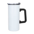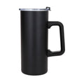 Termo de doble pared con exterior de acero inoxidable e interior de plástico. Incluye tapa de cierre a presión.