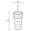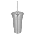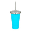 Termo con doble pared de acero inoxidable y tapa enroscable. Incluye popote metálico.