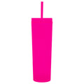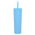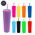 Termo de plástico con doble pared, tapa enroscable y acabado rubber. Incluye popote de plástico.