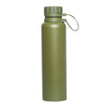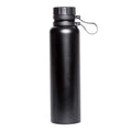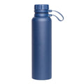 Termo de doble pared de acero inoxidable con acabado rugoso, insulado al vacío con tapa enroscable y correa de silicón.
