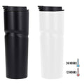 Termo insulado al vacío, con doble pared de acero inoxidable, acabado rugoso, tapa plástica enroscable y boquilla de seguridad.