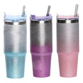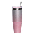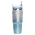 Termo con glitter, insulado al vacío, con tapa enroscable. Incluye popote.