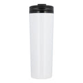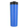 Termo de plástico con doble pared, tapa enroscable y válvula de seguridad.