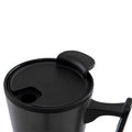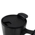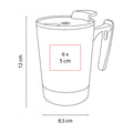 Doble pared. Pared interna de plastico y externa de acero inoxidable. Base de corcho. Incluye tapa de plastico de dos posiciones. Incluye caja individual. No usar en microondas ni lavavajillas.