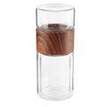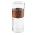 Termo de vidrio de doble pared para bebidas calientes y frias. Tapa de rosca que evita derrames. Contiene una separacion de infusor removible para te de acero inoxidable. Su colador y doble vaso permiten preparar infusiones. Incluye caja individual.