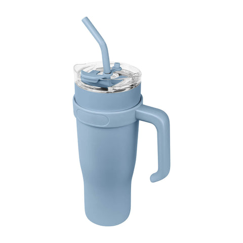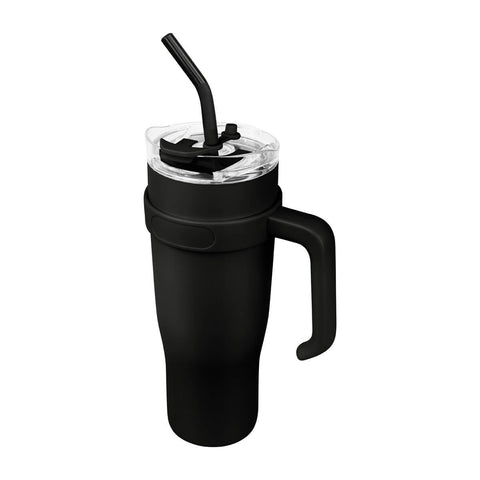 Termo doble pared. Cerrado al vacio. Pared interna y externa acero inoxidable. Cuerpo con terminado rugoso. Tapa de plastico y sobretapa con sistema push, incluye una ranura para popote con tapon de silicon. Su cuerpo de amplia capacidad lo hace perfecto para compartir o disfrutar de varias tazas de tu bebida favorita, ademas su asa ergonomica permite un transporte facil y comodo. Mantiene la temperatura caliente por 12 hrs y la temperatura fria por 20 hrs. Capacidad de 40 Oz. Base de 8.2 cm de diametro. Incluye popote metalico con boquilla de silicon y caja individual.