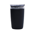 Termo doble pared. Interior de vidrio y exterior de plastico reciclado. Resistente a bebidas calientes y frias. Tapa de plastico con valvula de seguridad. Incluye caja individual.