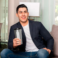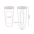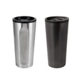 Doble pared. Pared interna plastico, pared externa acero inoxidable. Tapa de plastico con valvula de seguridad. Incluye caja individual.