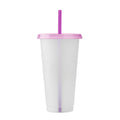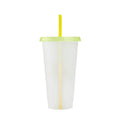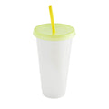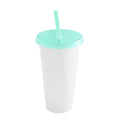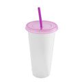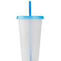Vaso de plastico de una pared. Anade fantasia y diversion, con este vaso que cambia de color al verter bebidas frias. Su tapa y popote, coinciden con el tono que el vaso revelara al enfriarse, dando como resultado, un conjunto armonioso y divertido. Perfecto para quienes buscan una experiencia refrescante y visualmente atractiva en cada bebida. Capacidad 27 Oz. Base de 6.4 cm.