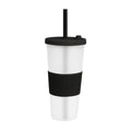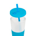 Vaso doble pared. Pared interna y externa de plastico. Tapa de plastico con sistema de rosca. Incluye popote. Cuerpo frosty con terminado suave. Su diseno con manga de silicon antideslizante garantiza un agarre comodo y seguro. Capacidad 22 Oz. Base de 6.4 cm de diametro. Caja individual incluida.