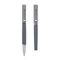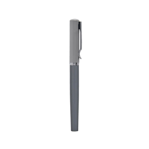 Boligrafo metalico con tapon. Color en dos tonos de gris. Incluye estuche.