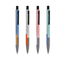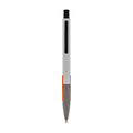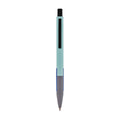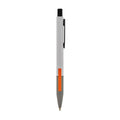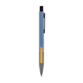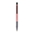 Boligrafo con barril combinado en color y punta gris. Boton y clip color negro. Grip de plastico en color. Mecanismo push. Incluye funda.