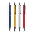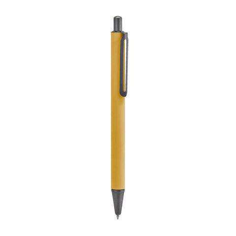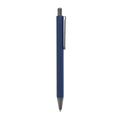 Boligrafo metalico con terminado mate y clip suajado. Mecanismo pulsador. Incluye funda.