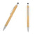 Bolígrafo de bambú con clip y punta metálica, goma touch screen y mecanismo de click.