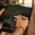 Lapiz infinito con recubrimiento metalizado y tapon de plastico. Incluye touchscreen y parte superior desprendible con borrador en su interior.