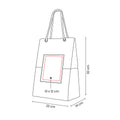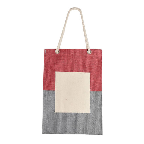 Bolsa con interior laminado y asas de cordones de algodon. Diseno en dos colores contrastantes. Parche frontal para impresion.