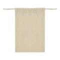 Bolsa con cierre de jareta. Fabricada con algodon natural, este accesorio ecofriendly es reutilizable, perfecto para utilizar como bolsa de regalo o para llevar pequenos accesorios.