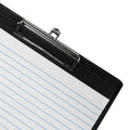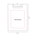 Carpeta de plastico con clip metalico. Incluye bloc de notas con 20 hojas. Cuenta con compartimento plegable para sostener un boligrafo. Cuenta con una pequena solapa interna para colocar hojas adicionales o tarjetas de manera ordenada y accesible.