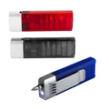 Contiene desarmador con 6 puntas diferentes e intercambiables, lampara y clip. Incluye 4 baterias de boton.