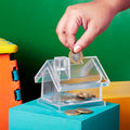 Alcancia con base en forma de casa.