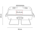 Asador portátil de carbón. Incluye parrilla y tapa con difusor de temperatura. Base con asas. Este producto por ser últimas piezas puede presentar alguna variación, no se aceptan devoluciones.