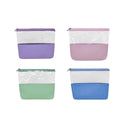 Cosmetiquera con cierre. Diseno combinado de PVC transparente y curpiel de color en base.