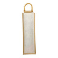 Bolsa para botella de vino. Incluye asas de madera e interior plastificado. El yute es un producto natural el cual puede presentar variaciones en tonalidades y en la urdimbre y trama de la tela.