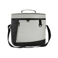 Interior y exterior plastificado impermeable. Bolsa principal y bolsillo frontal con cierre. Al frente cuenta con accesorio para colgar llaves o destapador. Incluye asa de mano y correa larga ajustable. Capacidad para 16 latas.