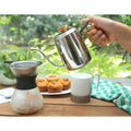 Jarra para leche o café fabricada en acero inoxidable y detalles en madera con recubrimiento de laca para una mejor resistencia. Con capacidad de 350 ml, cuenta con tapa y agarradera con acabados en madera para una mejor manipulación.