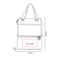 Interior plastificado. Compartimento superior e inferior con cierre y bolsillo frontal. Cuenta con 2 asas de agarre superior. Capacidad para 12 latas.