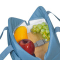Lonchera fabricada en poliester resistente y duradero, cuenta con un forro plastificado que facilita su limpieza. El compartimento principal, tiene un cierre y un bolsillo frontal para llevar objetos pequenos como, cubiertos, snacks o utensilios. Sus dos asas superiores facilitan su traslado y se pueden unir con un practico broche para mayor comodidad. Con una capacidad para 9 latas, esta lonchera es ideal para llevar tus comidas y bebidas favoritas de manera segura y organizada.