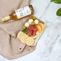 Mini tabla de quesos fabricada en madera de acacia con acabado en laca para una mayor durabilidad y resistencia.