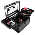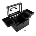 Neceser maletin multifuncional reforzado. Organiza todos tus productos de belleza de manera eficiente. Gracias a su diseno expandible, incluye 4 charolas; una especial para joyeria. Cierre con broche metalico, incorpora una cerradura con llave para mantener el acceso controlado. Asa superior para utilizarla en casa o para viajar.