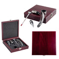 Set de vino con sacacorcho, boquilla, corcho metálico, corta gotas y termómetro.
