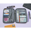 Porta documentos fabricado en poliéster, con asa superior y múltiples compartimentos internos. Con un compartimiento en la parte trasera con cierre. Es ideal para llevar todos tus documentos, tarjetas y pasaporte en orden. Este porta documentos es el compañero perfecto para viajes y desplazamientos, ya que te permite mantener todos tus documentos esenciales a la mano y en orden.