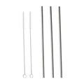 Set de 3 popotes de acero inoxidable reutilizables y 2 cepillos limpiadores con bolsa individual de tela de fácil cierre y apertura. Los popotes se pueden grabar y la bolsa cuenta con amplia área para impresión. Son ideales para viajar y responsables con el medio ambiente.