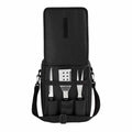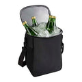 Bolsa principal con funcion de hielera. Capacidad para 12 latas. Incluye bolsa frontal con 3 compartimentos internos para el set de cuchillo, espatula y tenedor. 2 Bolsas laterales de red y correa ajustable.