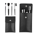 Set con 1 aplicador de sombras, 1 peine para cejas y pestanas, 1 pincel para sombras, 1 brocha para rubor o polvo y estuche.