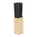 Incluye 6 cuchillos y base de madera. La madera es un producto natural el cual puede presentar variaciones en tonalidades y vetas.