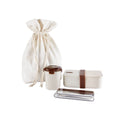 Medidas: 32 x 39 x 13 cm Bolsa / 19 x 6.5 x 11.5 cm Lonchera / 9 x 10.5 cm Contenedor / 16 x 6.3 x 2 cm Cubiertos