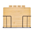 Juego de tablas de bambu para cocina con soporte metalico. Incluye tabla para cortar pollo, carnes rojas, pescado y verduras. Incluye caja individual. La madera es un producto natural el cual puede presentar variaciones en tonalidades y vetas.