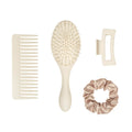 Complementa tu rutina para el cuidado del cabello con este set que incluye 1 cepillo, 1 peine, 1 pinza y 1 dona. Cada accesorio, hecho con materiales suaves al tacto, se mantiene perfectamente ordenado dentro de su estuche de curpiel.