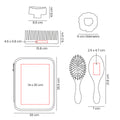 Medidas: 20 x 25.5 x 6 cm Estuche / 15.8 x 6.2 cm Peine / 8.6 x 4.6 x 4.2 cm Pinza / 7 x 21.8 x 4.7 cm Cepillo / 9 cm diámetro Dona